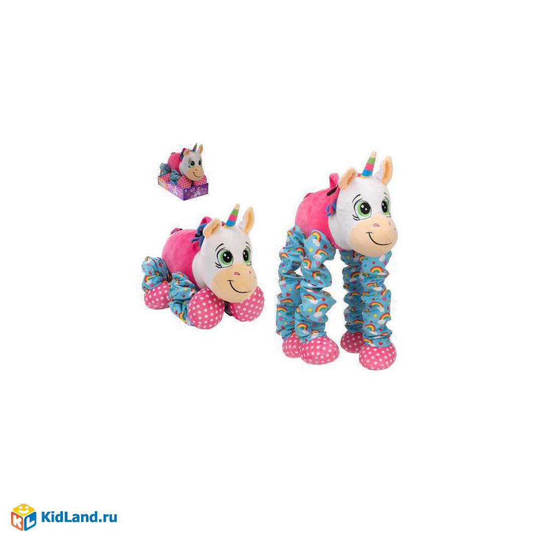 Лапы мягкого Единорога растягиваются как пружины! Стоит только потянуть за ручку на спине яркого Единорога, и он «вырастет»!