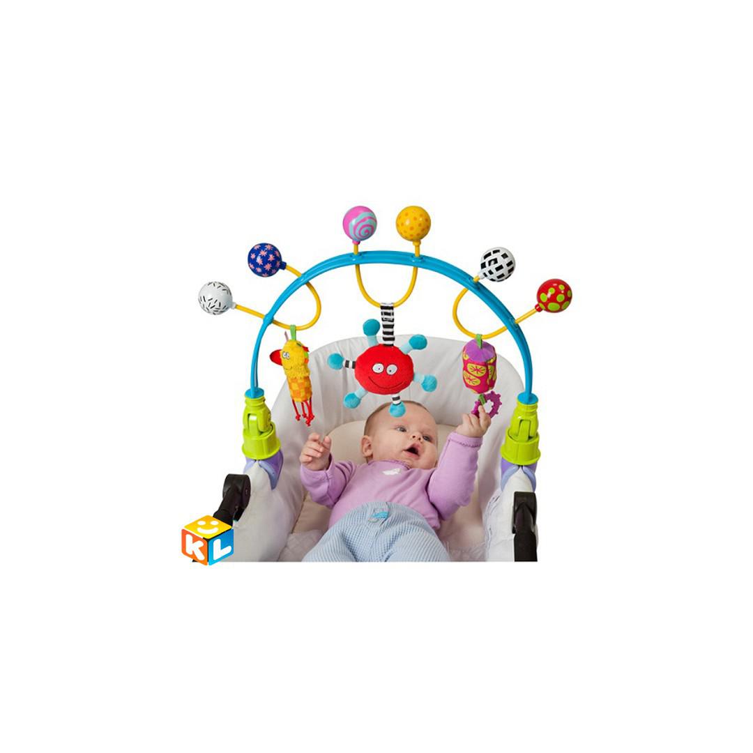 Taf Toys 11485 Таф Тойс Гибкая дуга Гибкая дуга для коляски. Красочная дуга с множеством функций и развлечений:разноцветные шарики-погремушки, подвеска со звуком ветряных колокольчиков, шуршащая птичка, забавная погремушка. Удобные пластиковые клипсы позволят Вам без всяких усилий закрепить дугу на переноске или коляске. Гибкие трубки для регулирования высоты дуг.