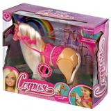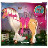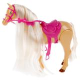 Эта красивая лошадка с голубыми глазами и эффектным розовым седлом непременно понравится вашей малышке. У лошади гладкая и блестящая грива, украшенная бантиками. С ней девочка сможет отправить любимую куклу на конную прогулку и придумать еще много новых сюжетов для игр.