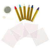 - 6 карандашей в комплекте: розовый, голубой, белый, серебряный, синий, фиолетовый