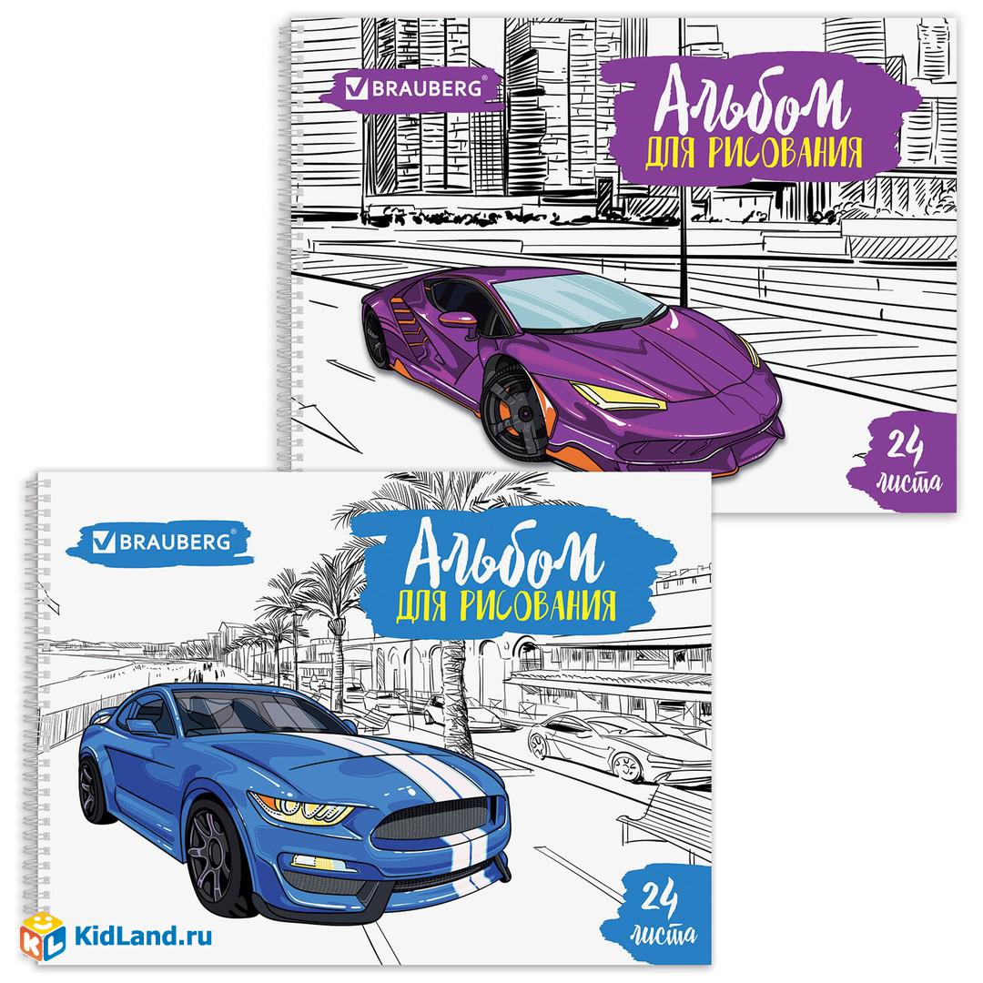 Альбом для рисования А4 24 листа, гребень, обложка картон, BRAUBERG ЭКО, 205х290 мм, "Суперкары" (2