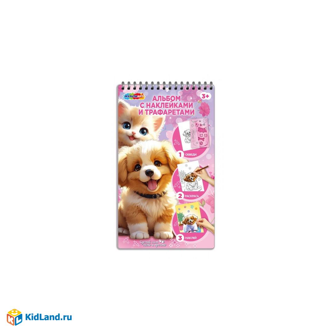 Альбом с наклейками и трафаретами кошечки и собачки MultiArt