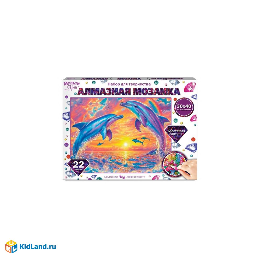 Алмазная мозаика 30*40 дельфины на закате MultiArt
