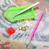 При помощи этого набора маленький художник сможет создать красивую картинку-мозаику, декорированную сверкающими стразами. Яркую блестящую поделку можно подарить близким или использовать для украшения комнаты.