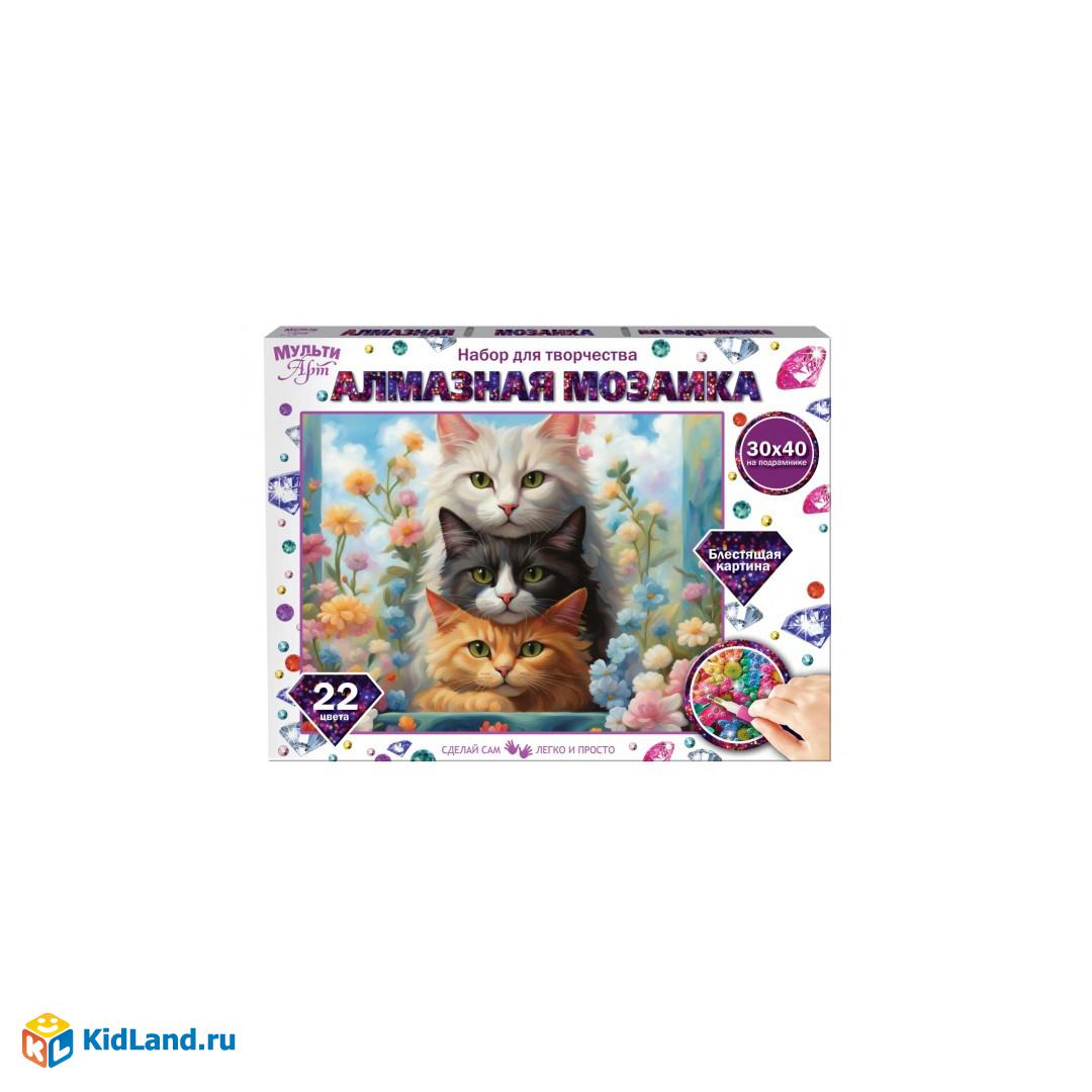 Алмазная мозаика 30*40 с подрамником трио мяу МУЛЬТИ АРТ