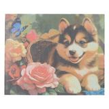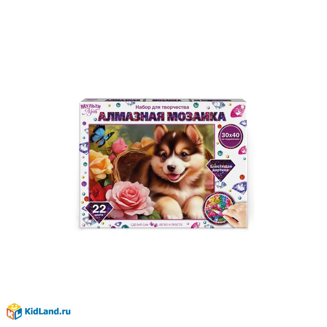 Алмазная мозаика 40*50 щенок в корзинке с цветами MultiArt