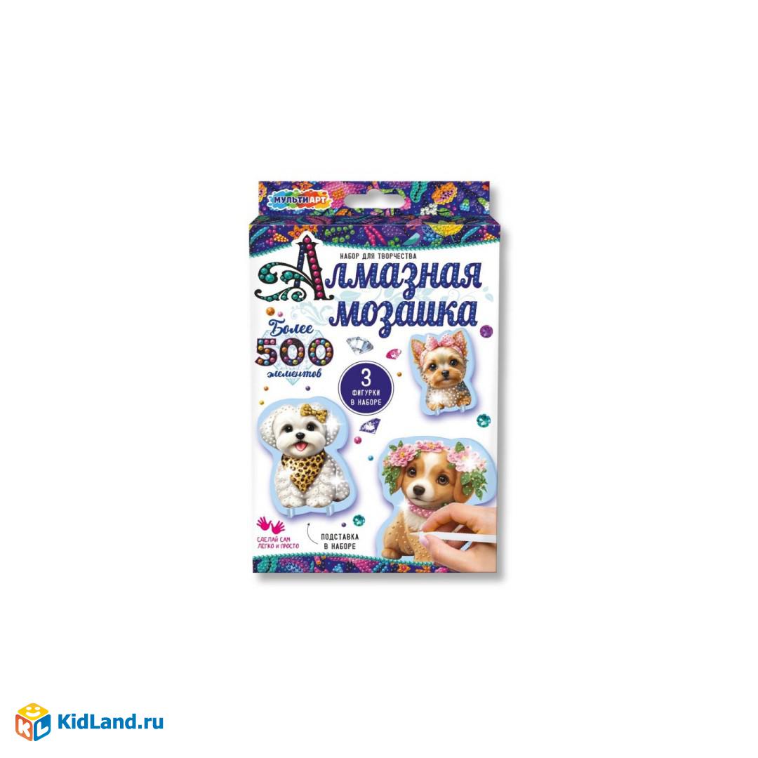 Алмазная мозаика фигурная на подставке 10*15 см стильные щенки МУЛЬТИ АРТ