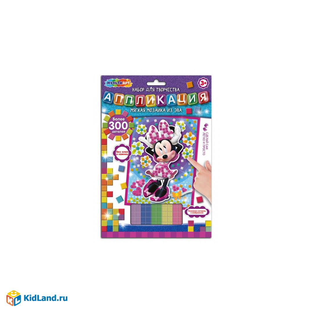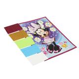 С помощью красочной основы и разноцветных деталей из мягкого материала маленький любознайка сможет самостоятельно создать яркую аппликацию с изображением очаровательной Минни Маус. Готовая поделка станет отличным вариантом для подарка близким или для украшения детской комнаты.
