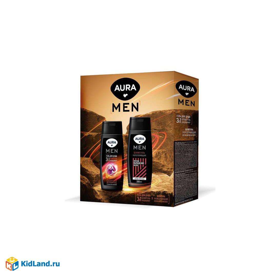 AURA MEN Подарочный набор: AURA MEN Гель для душа Энергия спорта 250 мл + AURA MEN Шампунь для волос Укрепляющий 250 мл