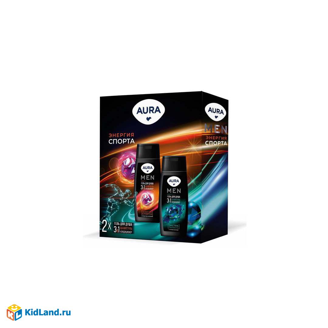AURA MEN Подарочный набор Энергия спорта: Гель для душа 3в1 Энергия Спорта 250 мл + Гель для душа 3в1 Экстра Свежесть 250 мл