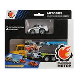 В данный набор входят две машины: грузовик с металлическим корпусом и легковая. Мини-машинку можно запускать, для этого предусмотрен специальный механизм. Чтобы запуск сработал, нужно предварительно раскрыть кузов грузовика, установить мини-автомобиль и нажать на кнопку.