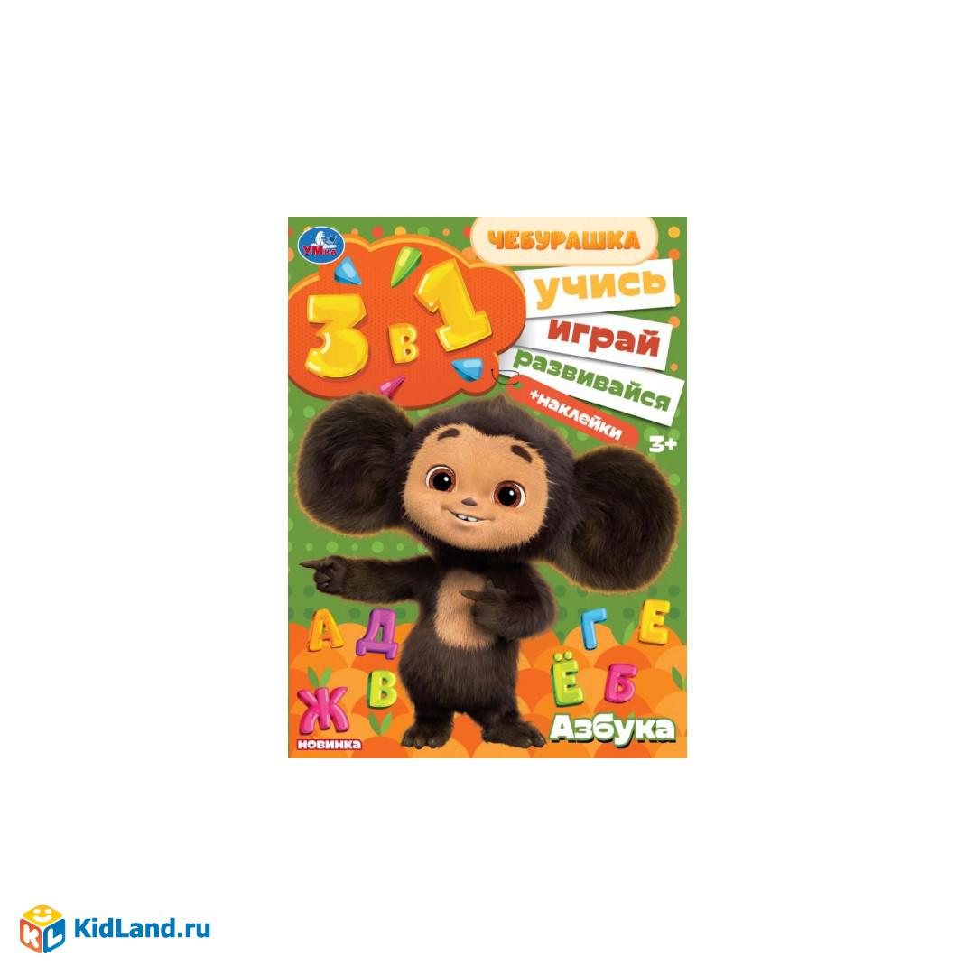 Азбука. Учись! Играй! Развивайся! Чебурашка. 3 в 1 + наклейки. 210х285 мм. 8 стр. Умка