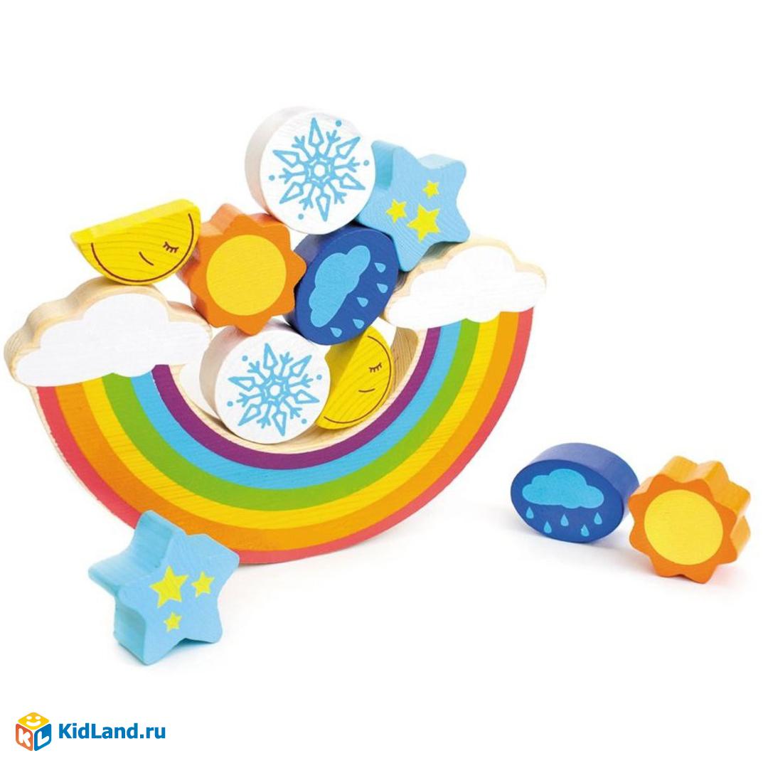 Балансир "Радуга" - эта веселая игра поможет ребенку развить ловкость, координацию движений, моторику пальцев и логическое мышление, а также на практике изучить цвета и формы.