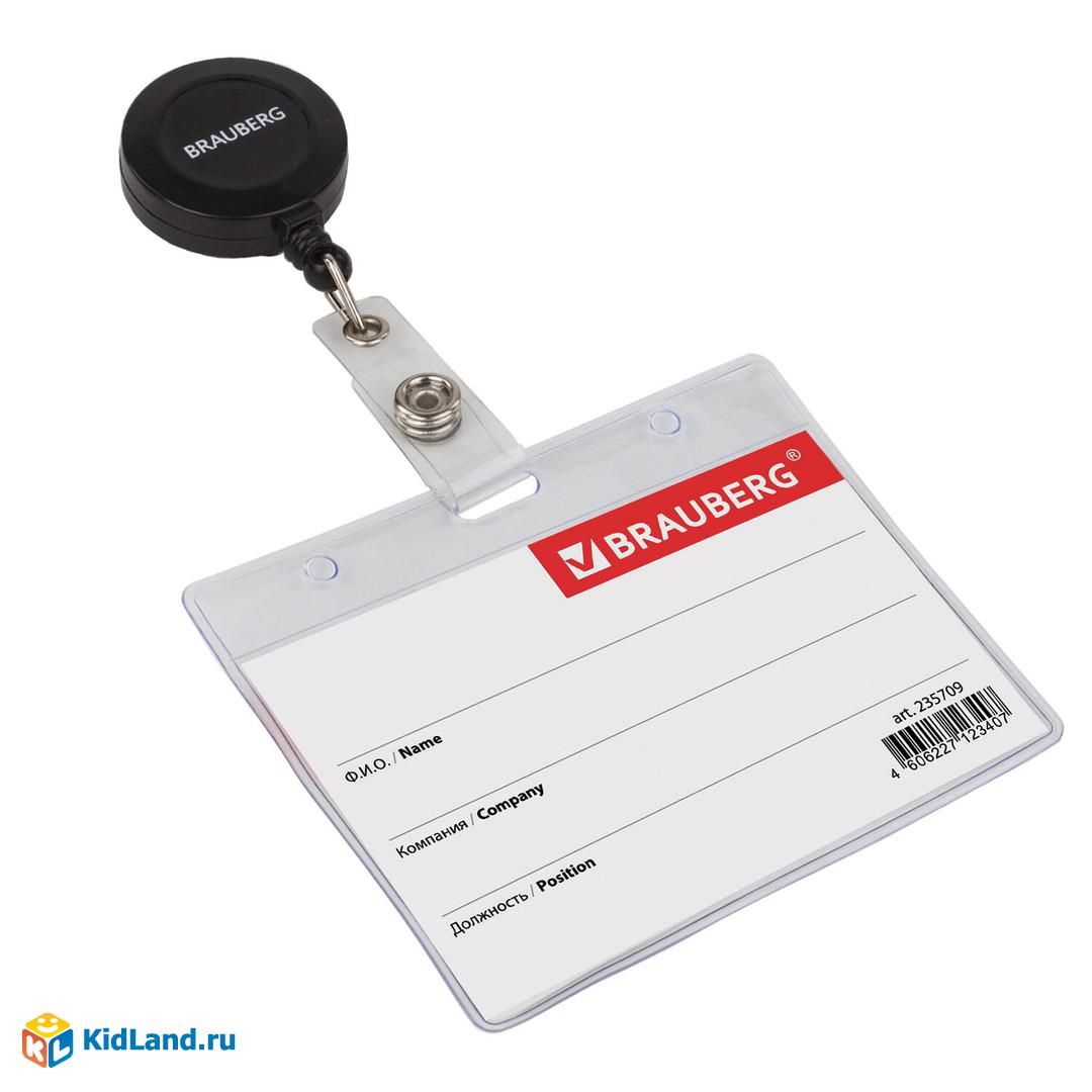 Бейдж горизонтальный (60х90 мм), с держателем-рулеткой 70 см, BRAUBERG, 235709