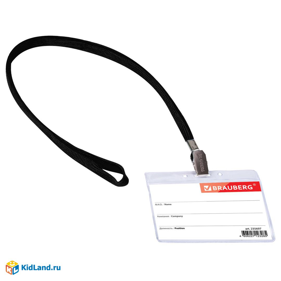 Бейдж горизонтальный (60х90мм), на черной ленте 45 см, BRAUBERG, 235697
