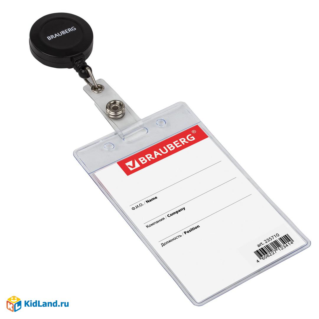 Бейдж вертикальный (90х60 мм), с держателем-рулеткой 70 см, BRAUBERG, 235710