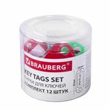 Бирки для ключей КОМПЛЕКТ 12 ШТ, длина 50 мм, инфо-окно 30х15 мм, АССОРТИ, BRAUBERG, 231151