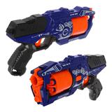 Бластер, стреляющий мягкими патронами – один из самых безопасных видов среди детского игрового оружия. Игрушка поспособствует развитию ловкости, меткости и глазомера. В комплекте прилагаются софт-патроны в количестве 20-ти штук, которые поочерёдно устанавливаются в шестизарядный барабан. Для выстрела нужно вытянуть подвижную деталь в задней части игрушки и нажать на курок.
