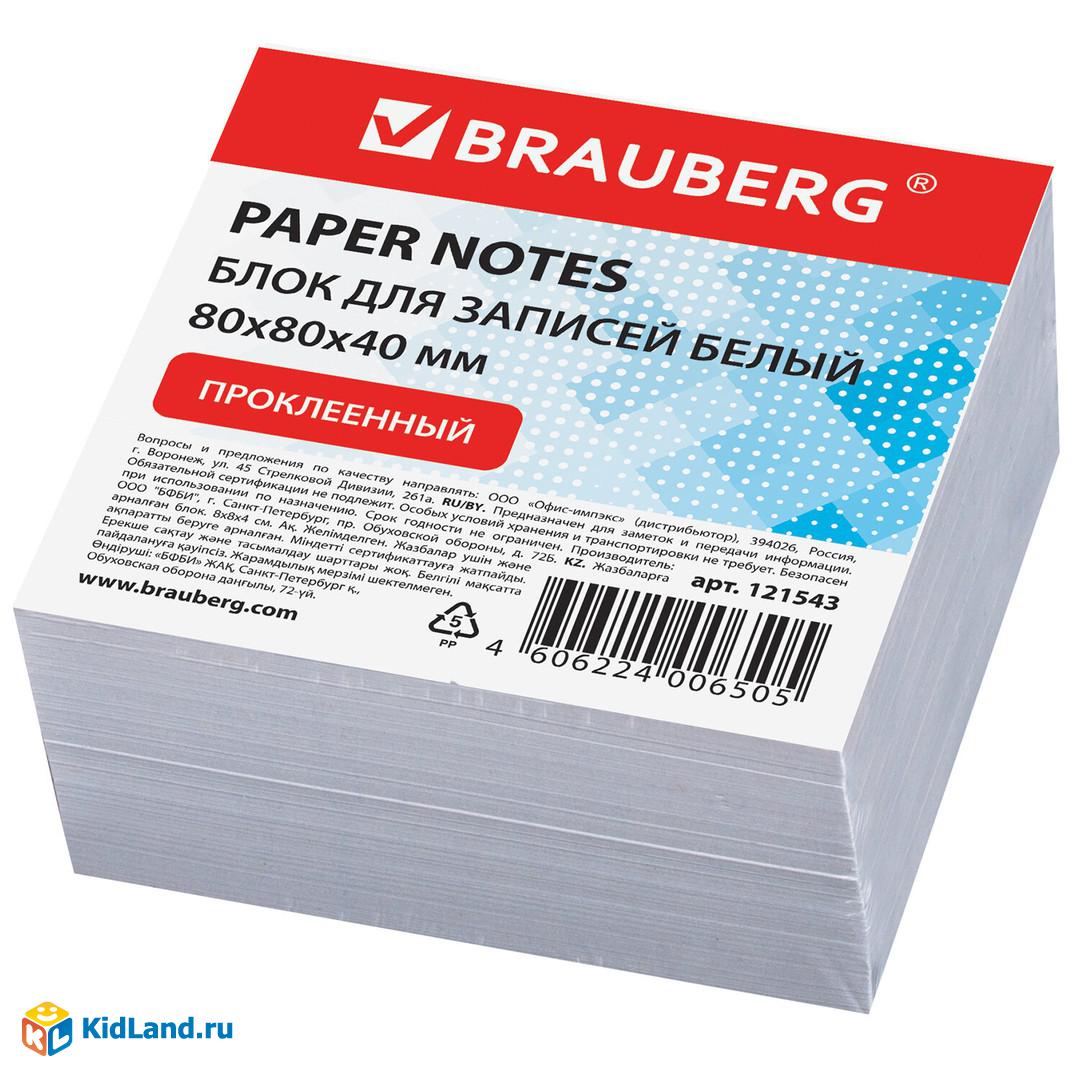 Блок для записей BRAUBERG, проклеенный, куб 8х8х4, белый, белизна 90-92%, 121543