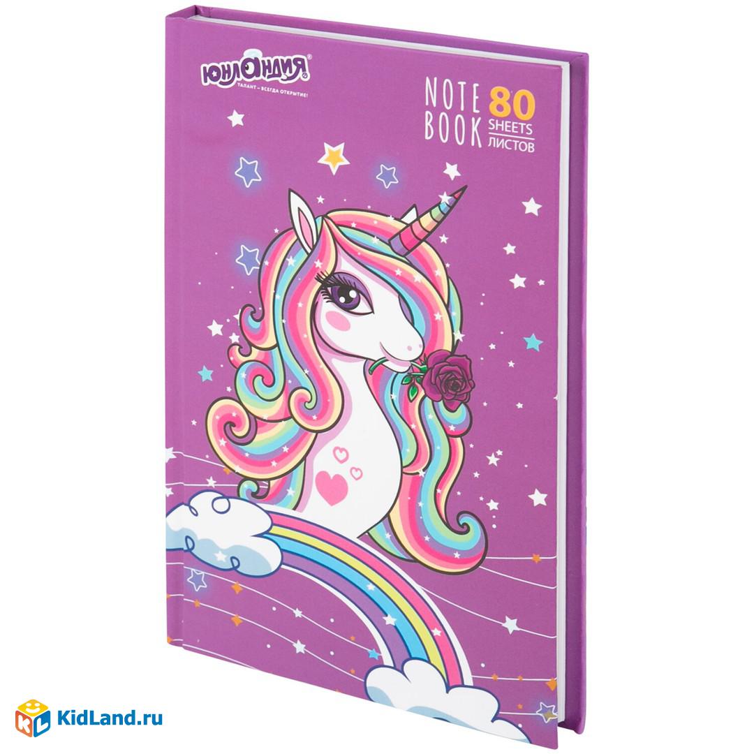 Блокнот А5 (135х206мм), 80л, твердый, клетка, выборочный лак, ЮНЛАНДИЯ, Единорог, 111616