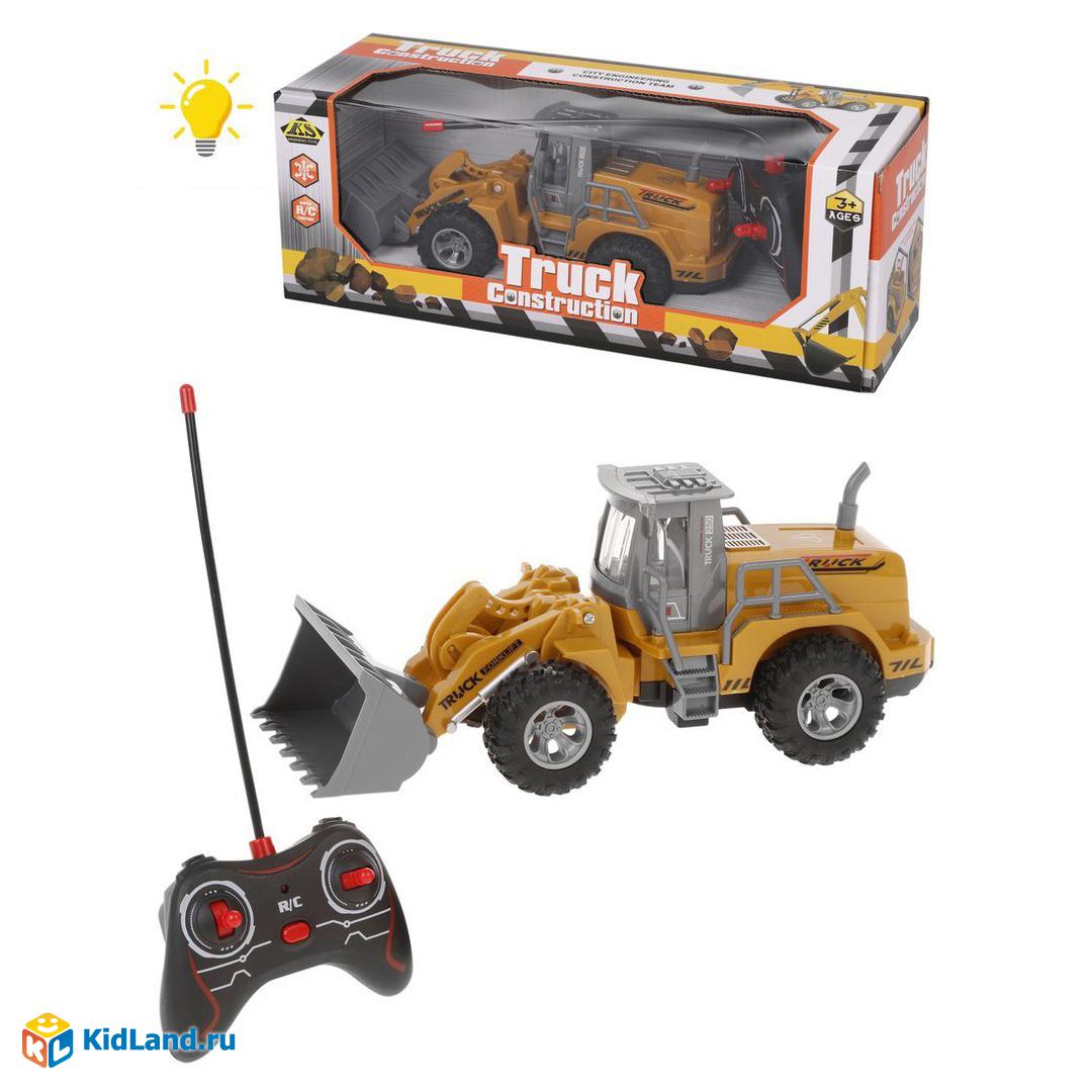 Бульдозер на радиоуправлении. Игрушка двигается во всех направлениях: вперёд, назад, поворачивает вправо и влево. Направления движения задаются нажатием рычагов пульта в соответствующие стороны. Ковш можно поднимать и опускать вручную. Во время игры внутри кабины загорается подсветка.
