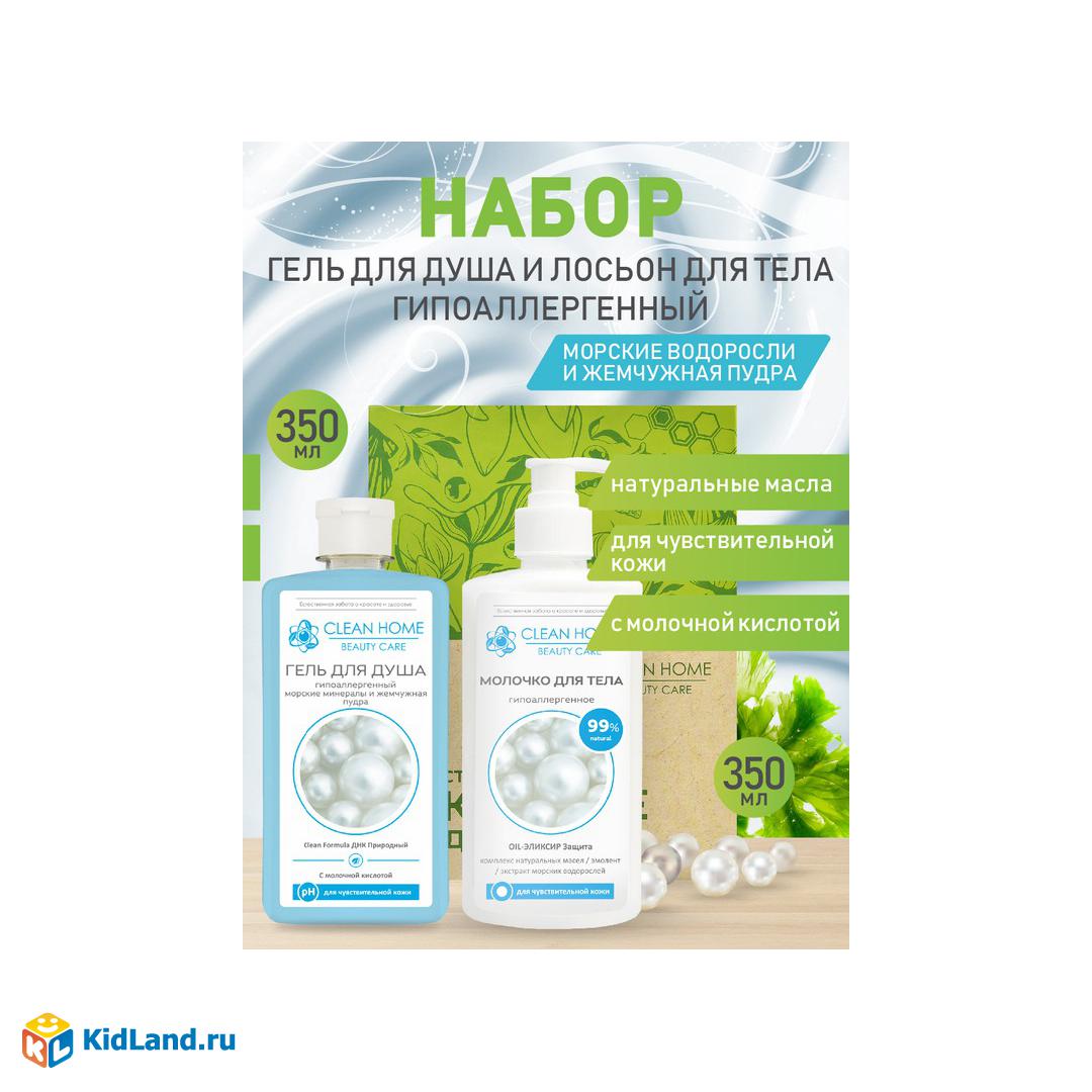 CLEAN HOME BEAUTY CARE набор уходовых средств в подарочной коробке Гипоаллергенный (гель для душа 350мл, молочко 350мл)
