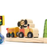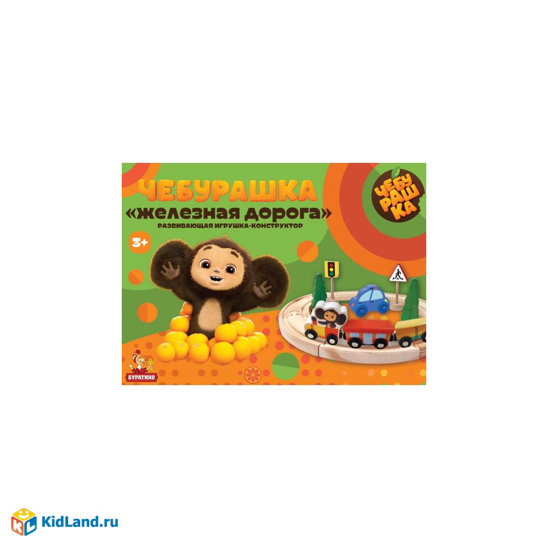 Деревянная железная дорога Чебурашка 21 элемент, коробка Буратино
