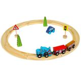 Малыш с удовольствием будет играть с этим интересным набором, в состав которого входят рельсы, дорожные знаки, деревья, машинка и поезд, состоящий из паровозика в виде Синего Трактора и 2-х вагонов с изображением персонажей любимого мультфильма. Ребёнок без труда сможет соединить рельсы в круг, расставить аксессуары вдоль полотна и катать (вручную) яркий поезд, представляя себя в роли машиниста. Все элементы выполнены из экологического материала - дерева.