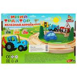 Деревянная железная дорога СИНИЙ ТРАКТОР 21 элемент, коробка Буратино