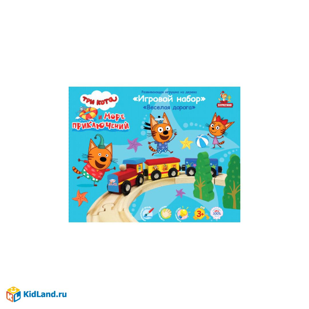 Деревянная игрушка - железная дорога «Три кота и море приключений. Весёлая дорога» ТМ «Буратино» - отличная развивающая игра для маленьких непосед: