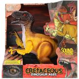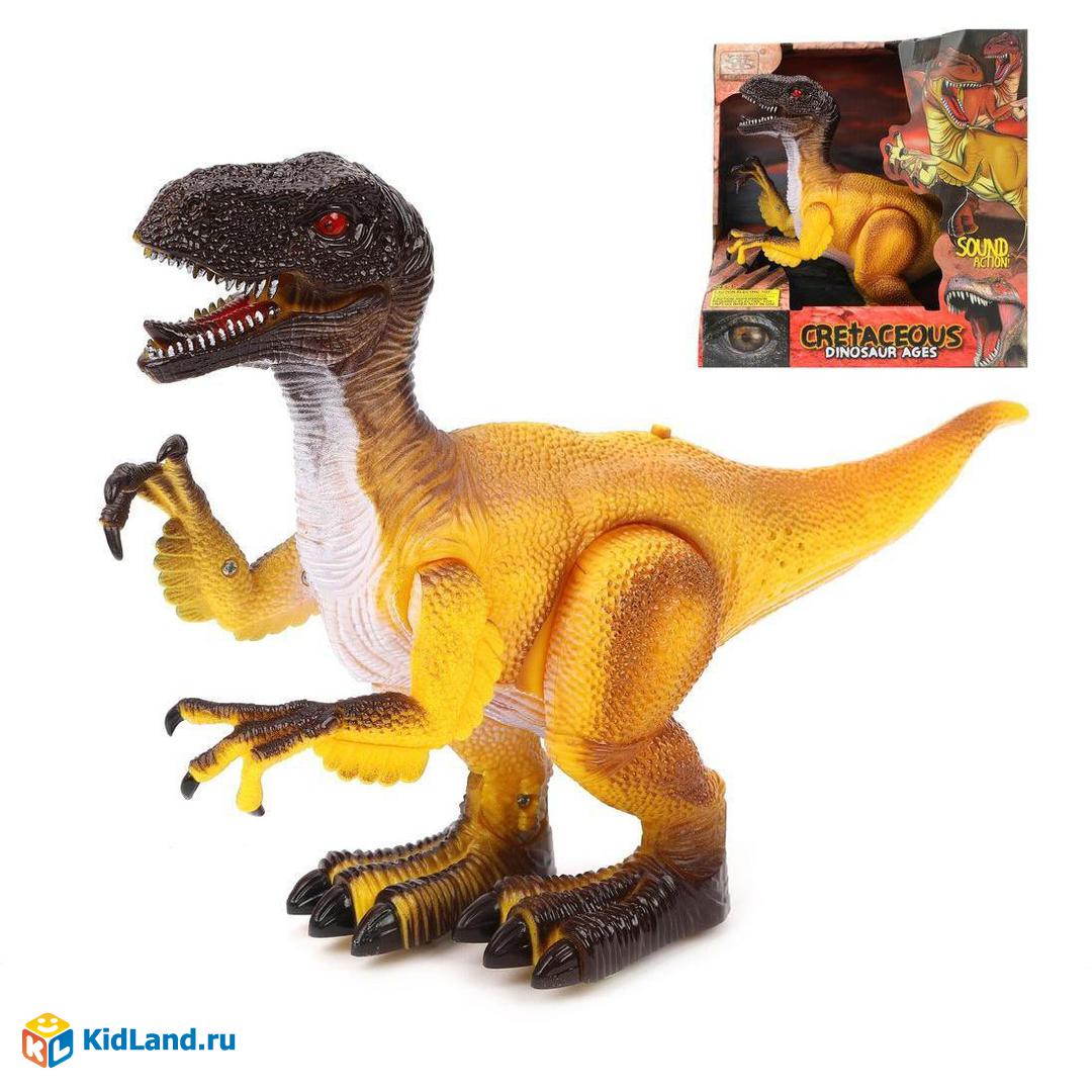 Электрифицированная игрушка «Динозавр» оснащена реалистичными светозвуковыми функциями. При включении динозавр начнёт идти вперёд, издавая грозные рычащие звуки. Во время игры его челюсть светится красным цветом.