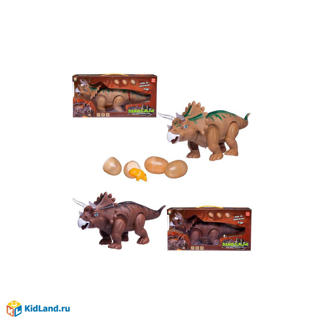 Динозавр Junfa Трицератопс, электромеханический, откладывает яйца, свет, звук