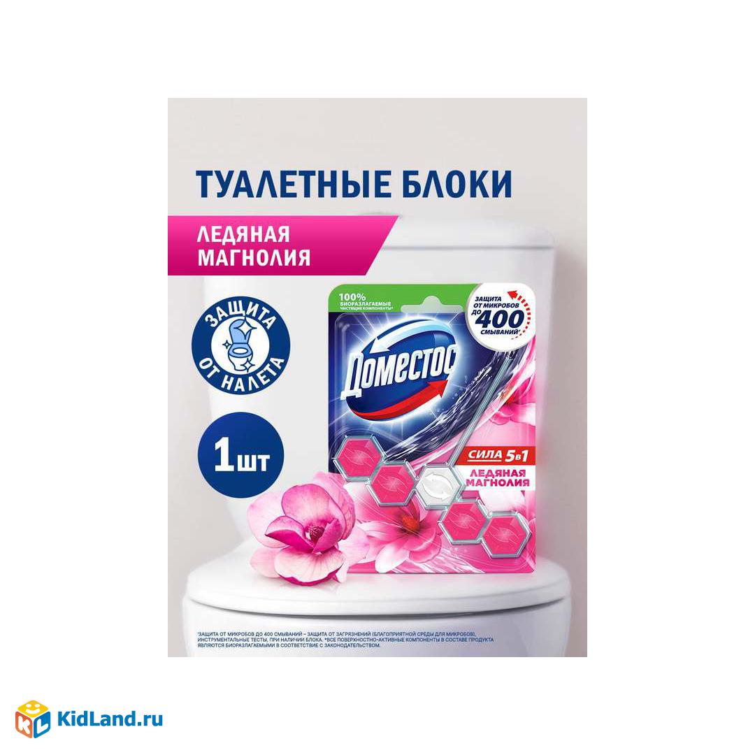 ДОМЕСТОС Туалетный блок для очищения унитаза Сила 5в1шт. Ледяная Магнолия 1шт.х55г