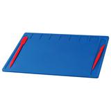 Набор состоит из 3 предметов: 2 стеков и доски. Имеет удобную, функциональную форму с углублениями для стеков и 7 отделениями для пластилина. Производится из жесткого прочного пластика толщиной 2 мм, к которому не липнет пластилин. Размер - 200х280 мм. Выполнена в ярко-синем цвете. Поставляется в термоусадочной пленке.