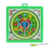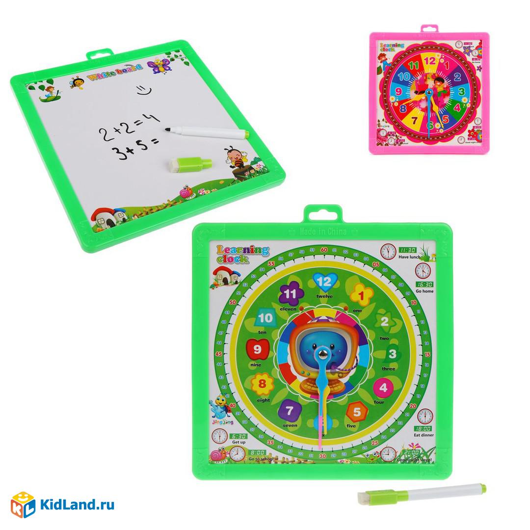 Детская доска для рисования пригодится каждому начинающему художнику! Одна сторона доски подходит для рисования маркером. С другой стороны доски расположены часики со стрелками, которые можно вращать, выставляя время. В комплекте прилагается маркер с губкой для стирания на крышечке.