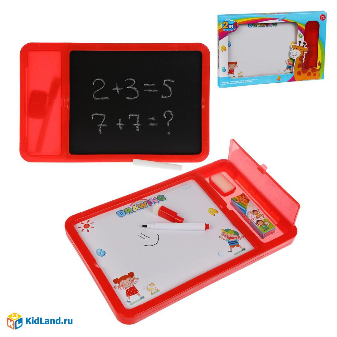 Доска для рисования двухсторонняя, мелки, маркер в компл., кор.