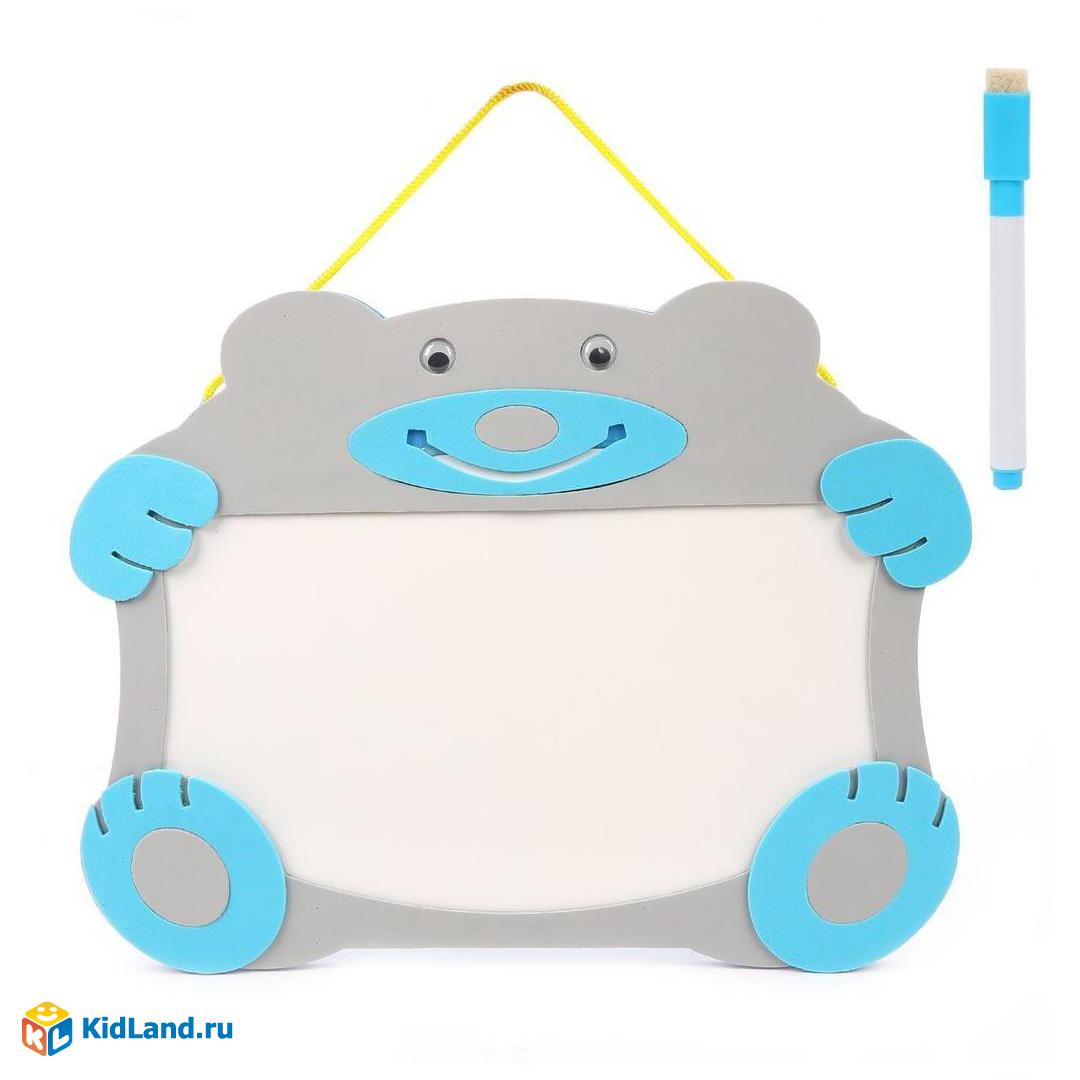 Рисовать на доске "Миша" можно с помощью специального маркера с губкой на колпачке, который поставляется в комплекте. Для того, чтобы стереть нарисованное, нужно провести колпачком с губкой по рисунку. В игрушке предусмотрена веревочная ручка.