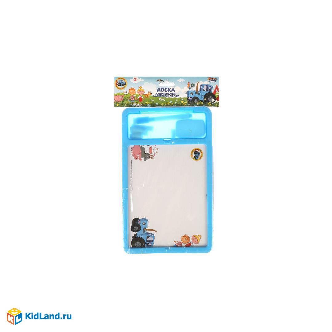 Доска для рисования СИНИЙ ТРАКТОР маркером и мелом с наклейками ИГРАЕМ ВМЕСТЕ