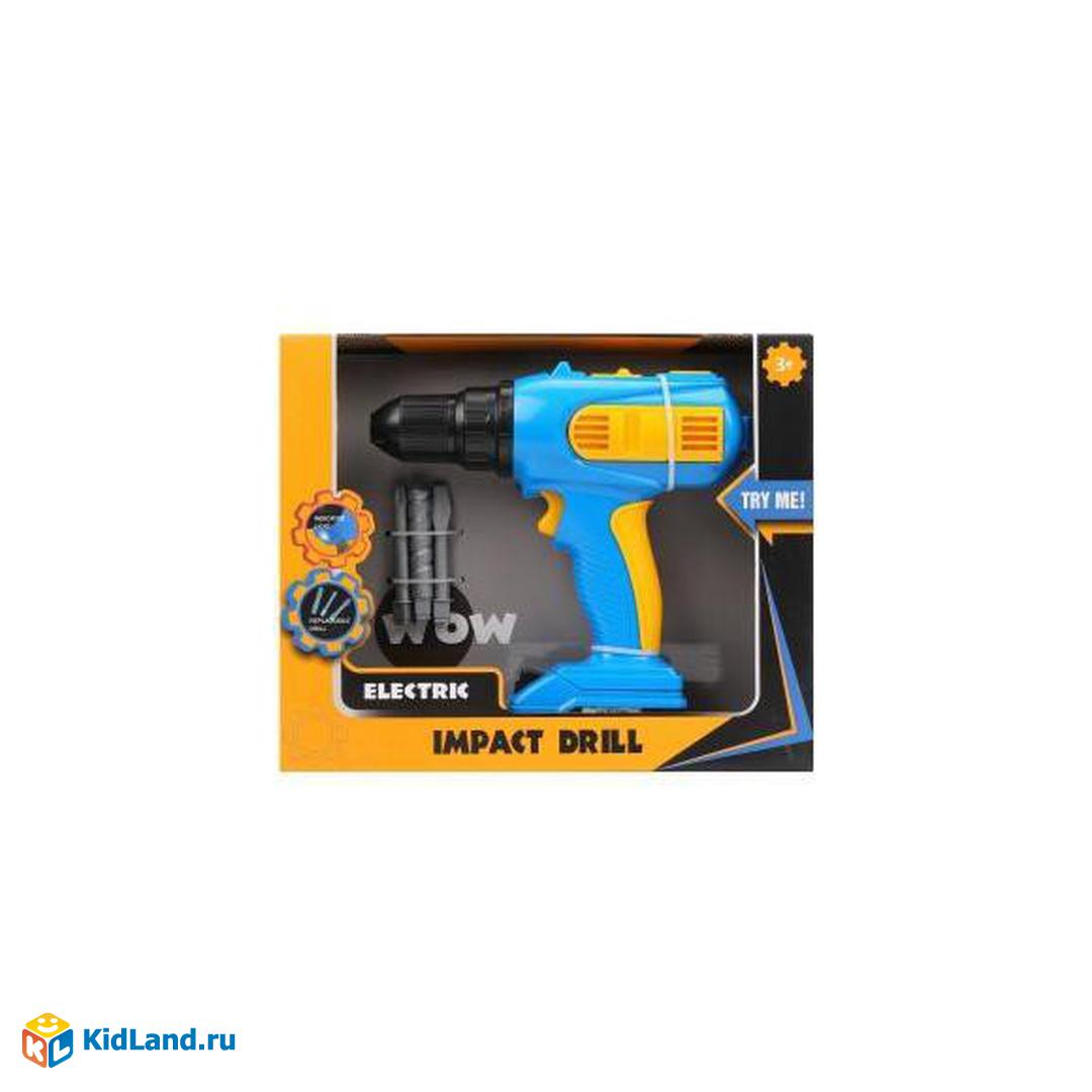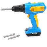 Игрушечная электрифицированная дрель выглядит и работает почти как настоящий рабочий инструмент! При нажатии на пусковую кнопку сверло реалистично вращается с характерным звуком. В комплекте прилагаются 3 сменные насадки в виде шуруповерта, крестовой и плоской отвёртки.