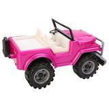 Мощный и яркий джип с открытым верхом привлечет внимание не только мальчишек-автолюбителей, но и юных красавиц, которые захотят прокатить в авто своих любимых кукол. Машинку выделяет насыщенный розовый цвет, она имеет огромные колеса с широкими шинами и одно запасное колесо на дверце багажника, рядом с запаской закреплена канистра.