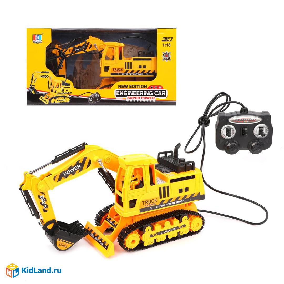Игрушечный экскаватор на пульте управления выполнен в масштабе 1:18. Нажатием соответствующих рычагов пульта можно осуществлять движение игрушки вперёд и назад, подъём и опускание крана, а также поворот платформы вправо и влево. Схема комбинаций команд показана на дне упаковки.