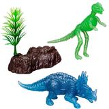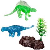 Реалистичная фигурка динозавра и его скелет в комплекте с элементами природного ландшафта. После пребывания в течении некоторого времени в освещенном пространстве, фигурки будут светиться в темноте! 6 видов в ассортименте дают возможность собрать домашнюю коллекцию представителей древнего мира.