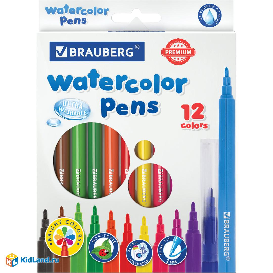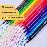 Фломастеры BRAUBERG "PREMIUM", 12 цветов, УЛЬТРАСМЫВАЕМЫЕ, классические, вентилируемый колпачок, кар