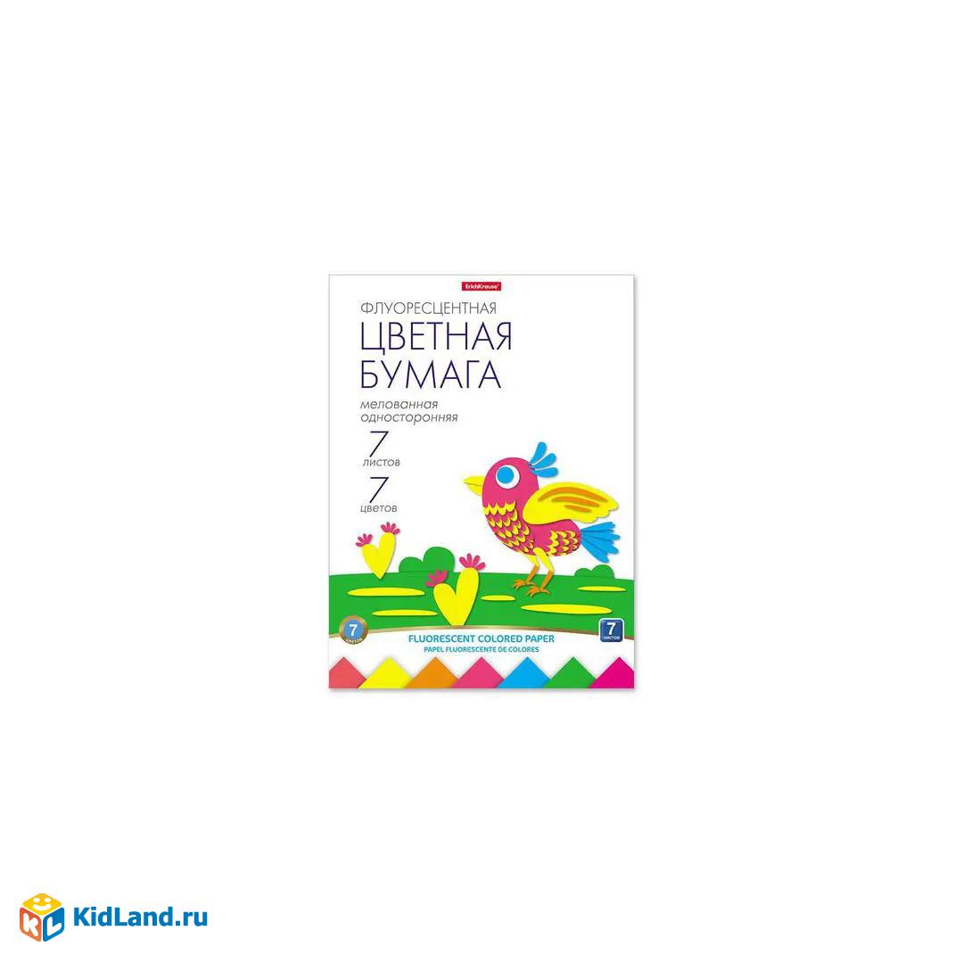 Флуоресцентная цветная бумага мелованная односторонняя в папке ErichKrause, А4, 7 листов, 7 цветов, игрушка-набор для детского творчества