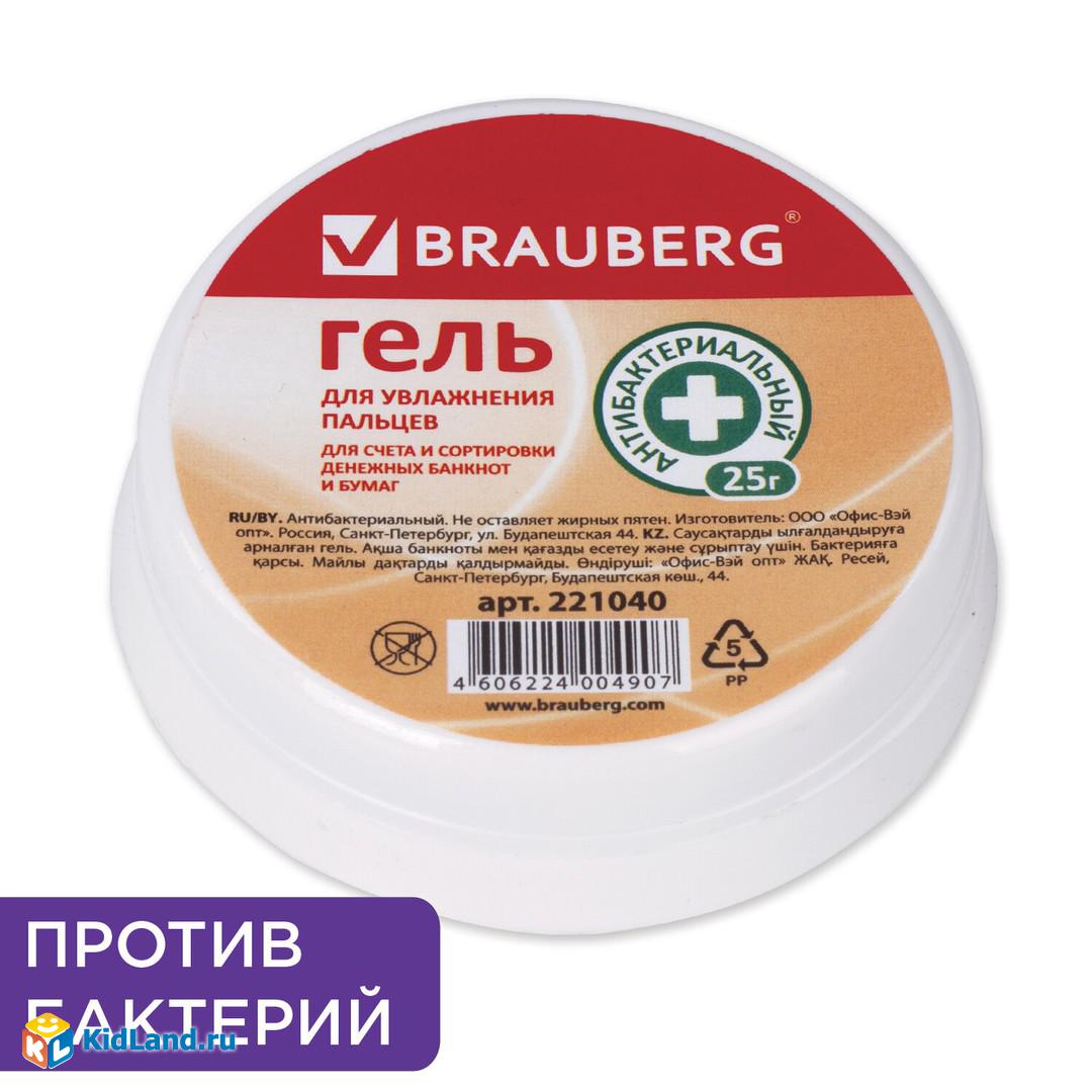 Гель для увлажнения пальцев АНТИБАКТЕРИАЛЬНЫЙ BRAUBERG, 25 г, Россия, 221040