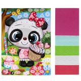 С помощью красочной картонной основы и разноцветных мягких элементов юная художница сможет самостоятельно создать необычную аппликацию с изображением милой большеглазой панды. Готовую поделку можно подарить близким или использовать для украшения интерьера.
