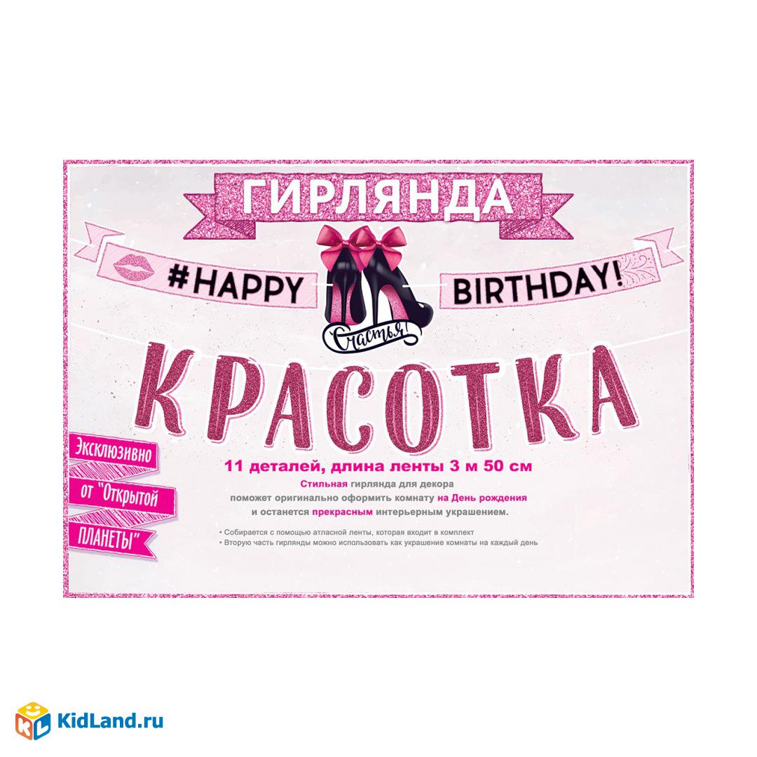 Гирлянда С Днем Рождения, Красотка, Розовый, 350 см, 1 шт