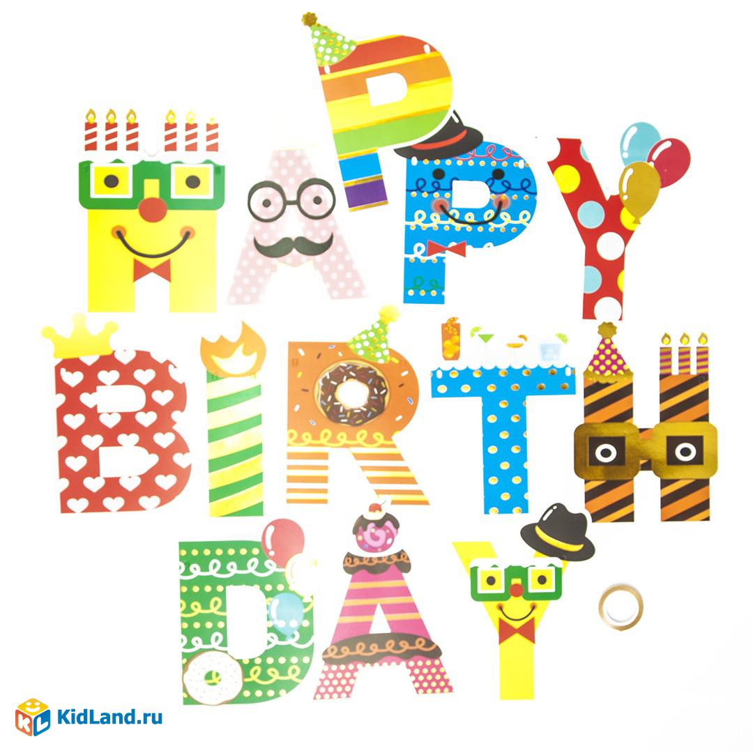 Гирлянда Веселые буквы, Happy Birthday, Ассорти, Металлик, 180 см, 1 упак, с
