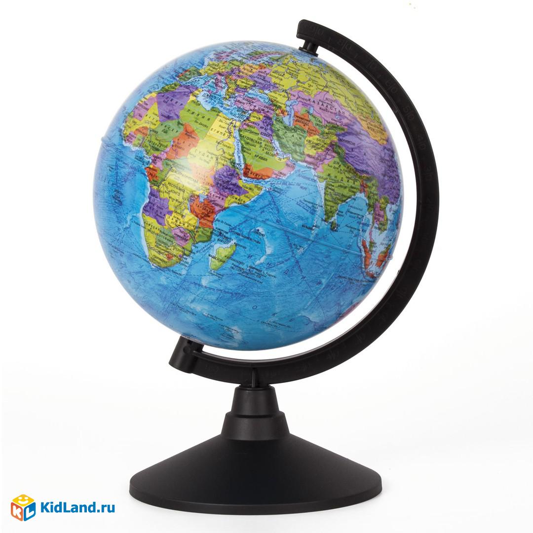 Глобус позволит ознакомиться с политической картой мира. Подходит для использования в детских садах и школах. Поможет узнать об организационно-правовом (политическом) укладе территорий, показывает сухопутные и морские границы государств и их столицы.