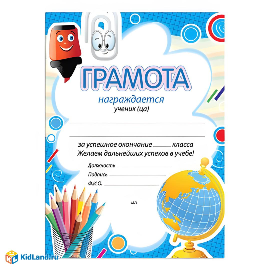 Грамота "Окончание класса" А4, мелованный картон, BRAUBERG, 123697